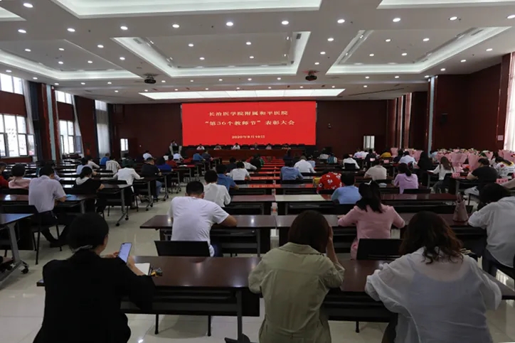 9月10日,是第36个教师节,为弘扬新时代尊师风尚,树立典型,展示广大教师良好的精神风貌,激励教师振奋精神,锐意进取,营造爱教敬业的浓厚氛围,不断开创教育教学新局面,附属和平医院在学术交流中心六楼召开教师节表彰大会。医院党政领导出席,各科主任、护士长及教研室主任,各总支书记及获奖教师参加,会议通过企业微信直播形式进行线上直播,和平医院常务副院长宋志斌主持。